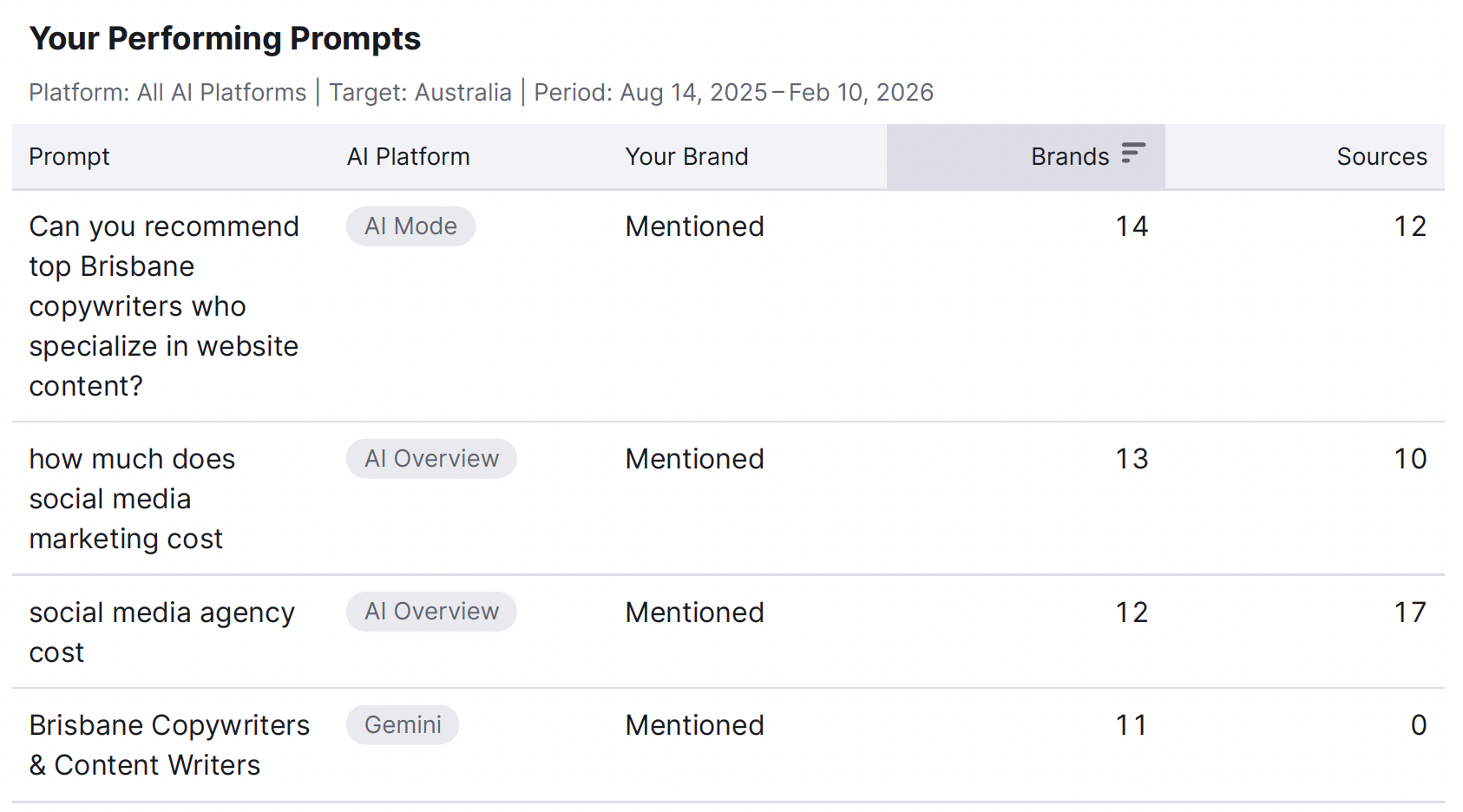 AI Search data shows where a brand is currently cited and where it’s missing.